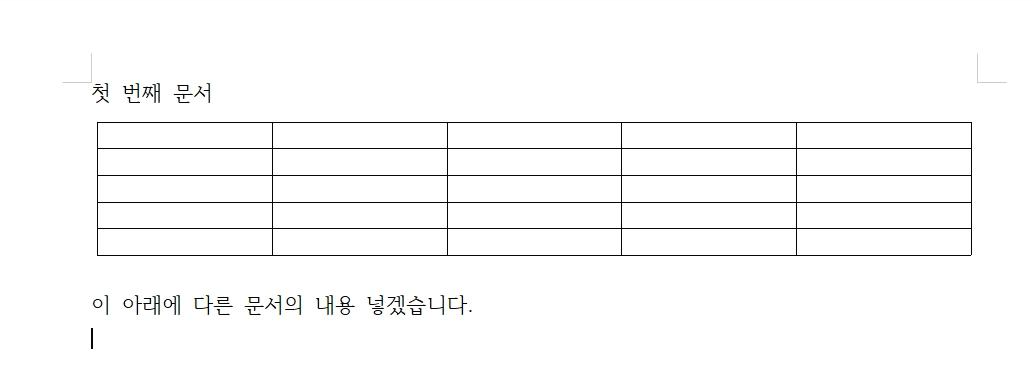 이 문서 밑으로 다른 문서를 넣으려면 제일 아래 커서를 놓고 ctrl+o를 누릅니다. 그럼 창이 뜨는데요, 여기에서 취합할 파일을 선택합니다.