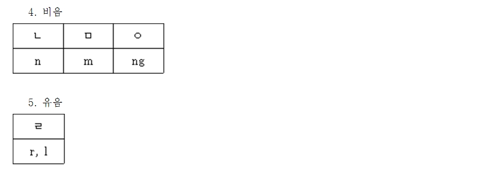 다음은 자음 표기 방법입니다.