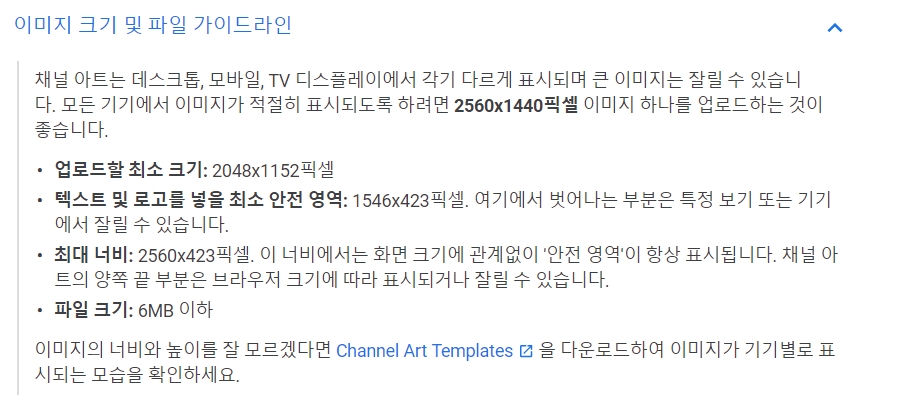 지금까지 유튜브 채널아트 사이즈 에 대해 알아보았습니다. 더 자세한 가이드라인은 위에 유튜브 고객센터 채널아트 가이드라인 부분 링크를 걸어 놓았으니 참고하면 될 것 같습니다.