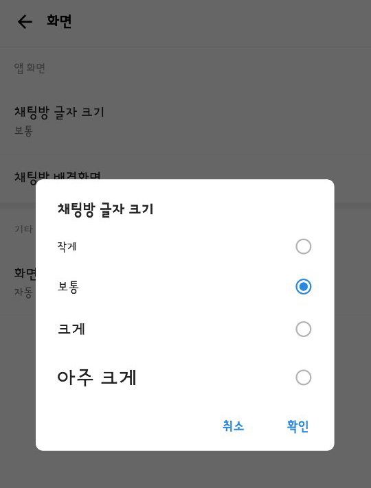 그러면 글자크기를 설정할 수 있는 창이 뜹니다. 여기에서 원하는 크기를 선택 후 확인을 누르면 끝입니다.