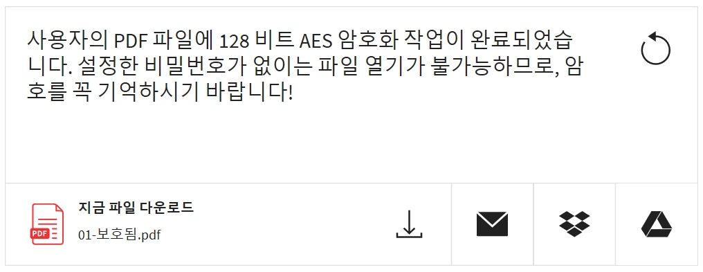 변환된 파일을 다운로드 받아주면 PDF 암호 걸기는 끝입니다.
