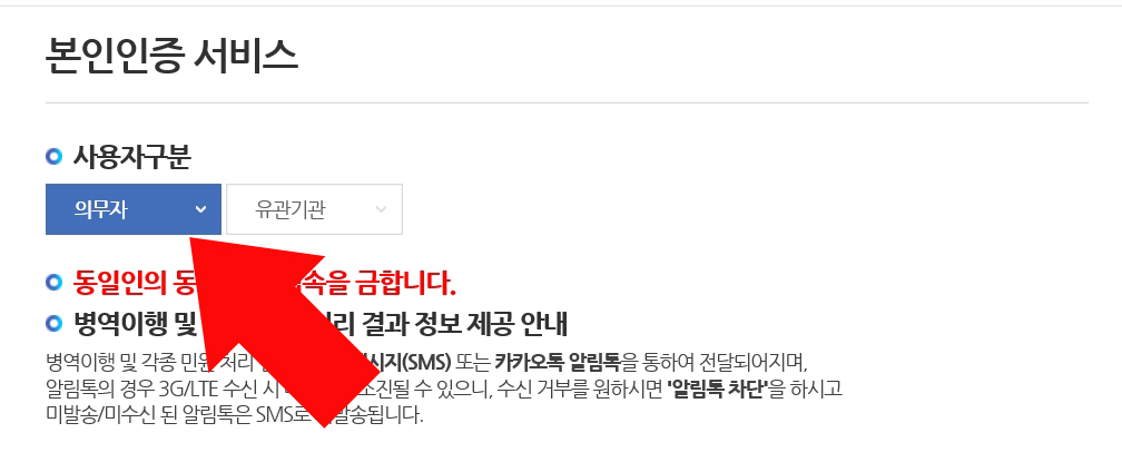 사용자구분에서 의무자를 선택합니다.