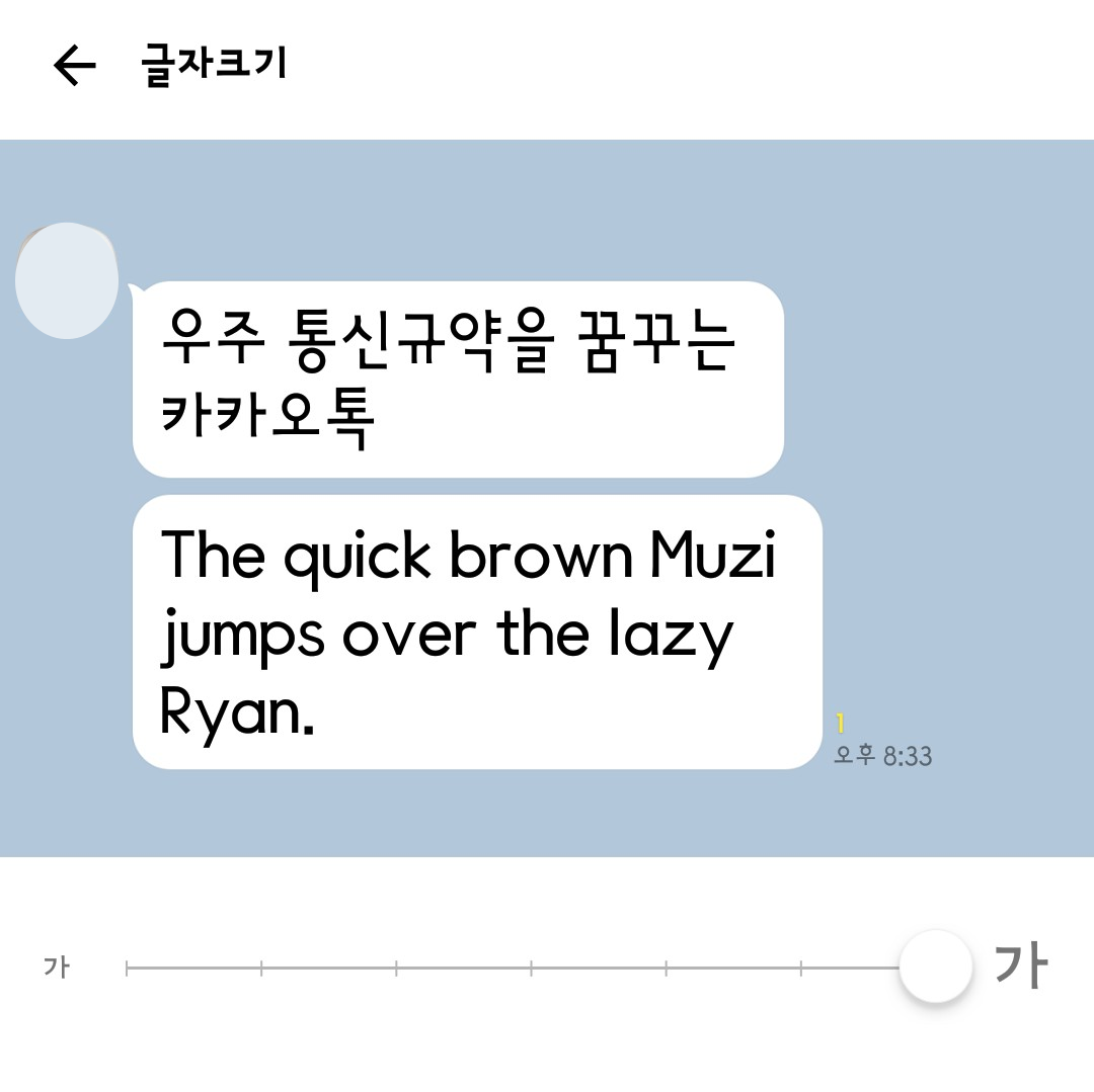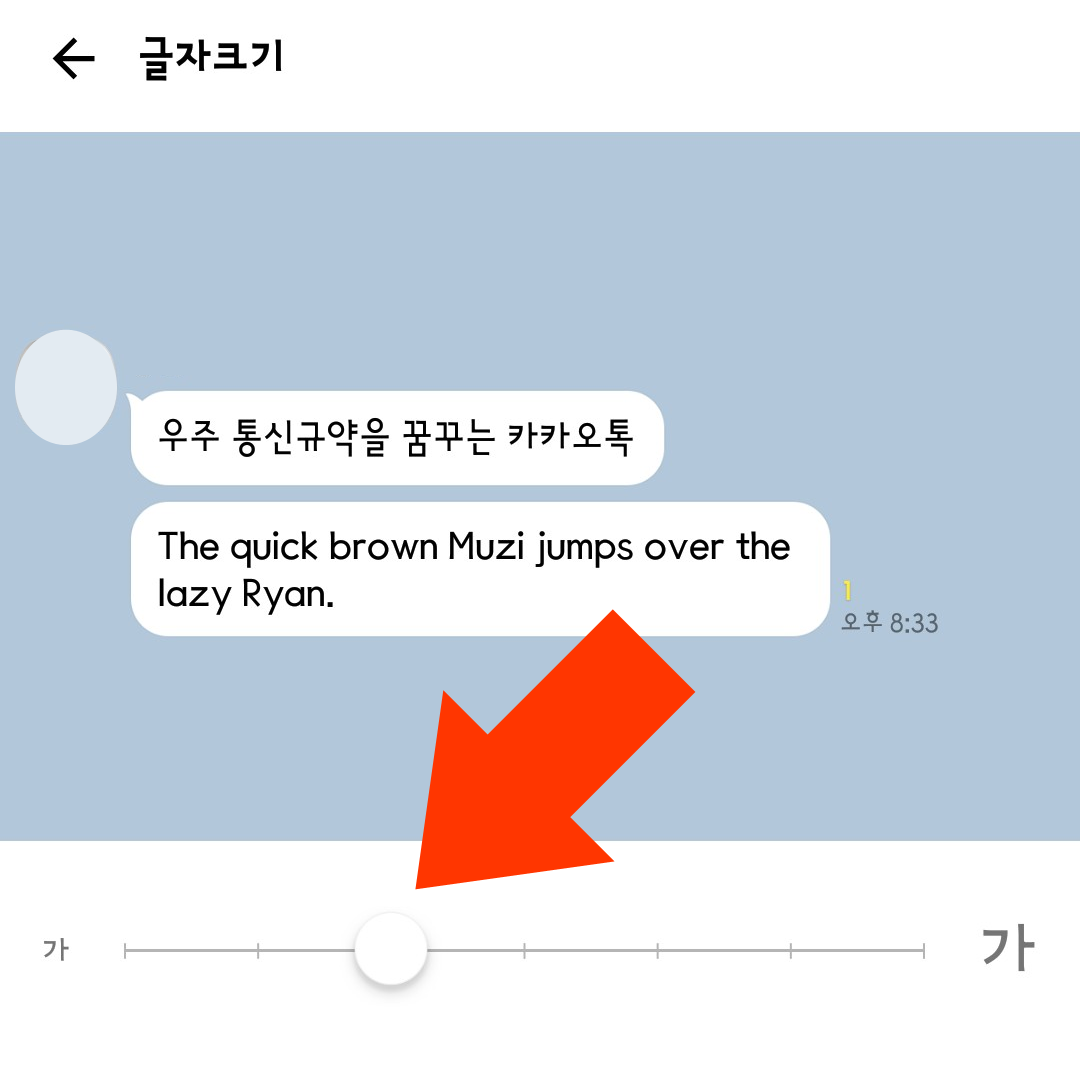 지금까지 카카오톡 글씨크기 조절하는 방법에 대해 알아보았습니다. 마음에 드는 글자 크기가 되도록 버튼을 옮기고 설정에서 나오면 바로 적용되어 있는 걸 확인할 수 있습니다.