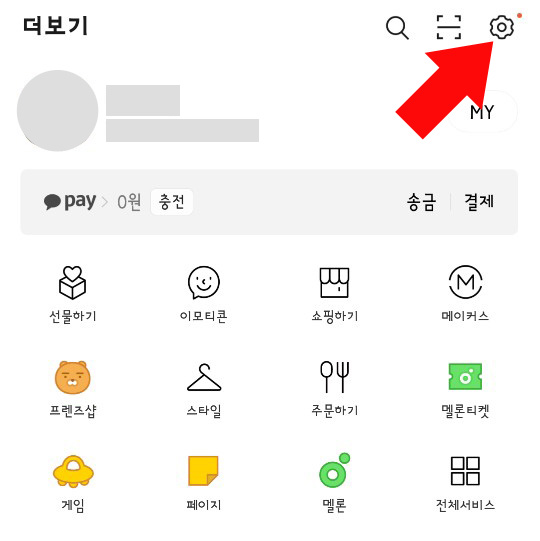 더보기 화면으로 넘어가면 화살표시 된 톱니바퀴 아이콘을 선택합니다.