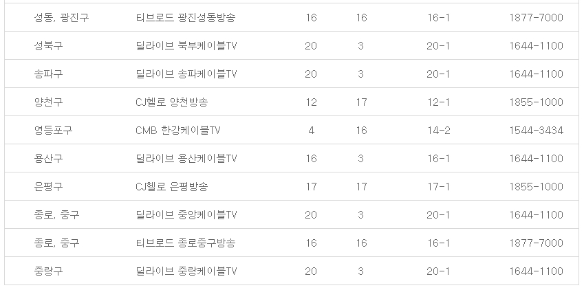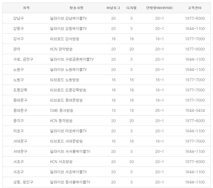 구로, 금천구 딜라이브 구로금촌케이블TV 20 3 20-1 1644-1100