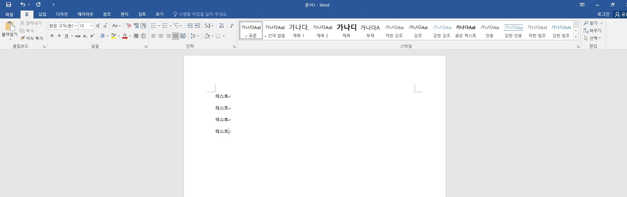 워드 기준 줄간격 값 160일 때 화면입니다. 아무래도 줄간격이 너무 넓은 것 같습니다.