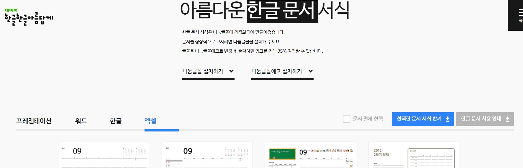 네이버에서 무료로 배포하는 나눔 글씨체는 깔끔해서 여기 저기 활용하기 참 좋은데요, 네이버에서는 글꼴뿐만 아니라 각종 문서 서식들도 무료로 배포하고 있어 유용하게 사용할 수 있습니다.