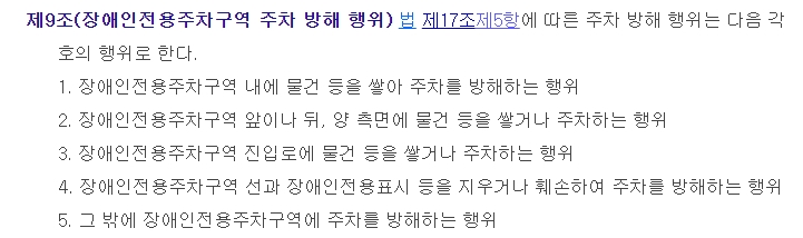 한가지 더 참고할 점은 꼭 주차 위반이 아니더라도 장애인전용주차구역에 물건을 쌓아 놓는 등 통행에 방해가 되는 경우에도 과태로가 부과된다는 것입니다.
